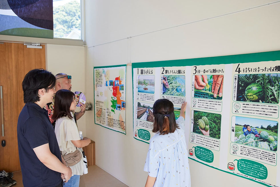 今回の目玉展示は、「三浦スイカの美味しいヒミツ」。三浦野菜デザインプロジェクトで取材した、雨風や日差しに負けずにたくましく育つスイカの成長過程を、展示を通して紹介しました。